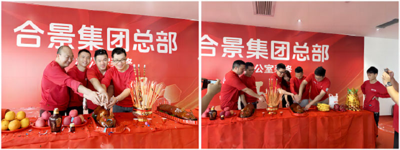 紅桌、紅錘、紅毯,色澤鮮亮紅潤的乳豬,紅紅火火!一錘開工大吉,二錘財源廣進,三錘萬事如意!伴隨著禮花的綻放,合景人手握禮錘,一同為新辦公區(qū)裝修開工儀式揭開序幕。在熱烈的掌聲中,大家共同慶祝辦公樓裝修工程的正式啟動!